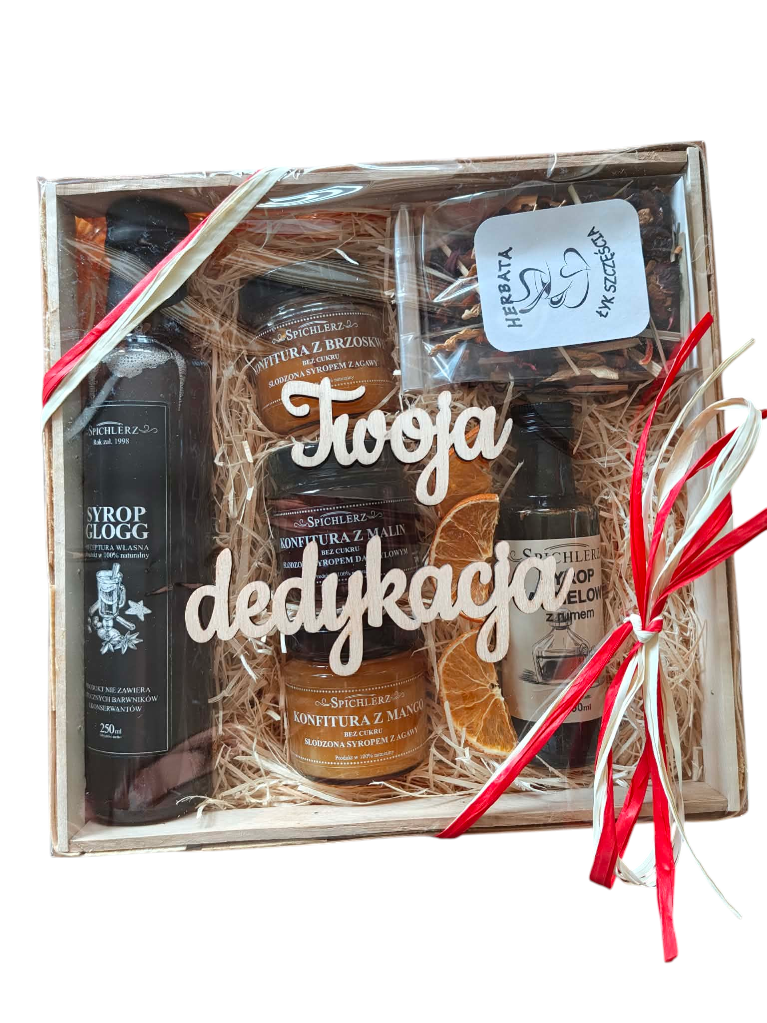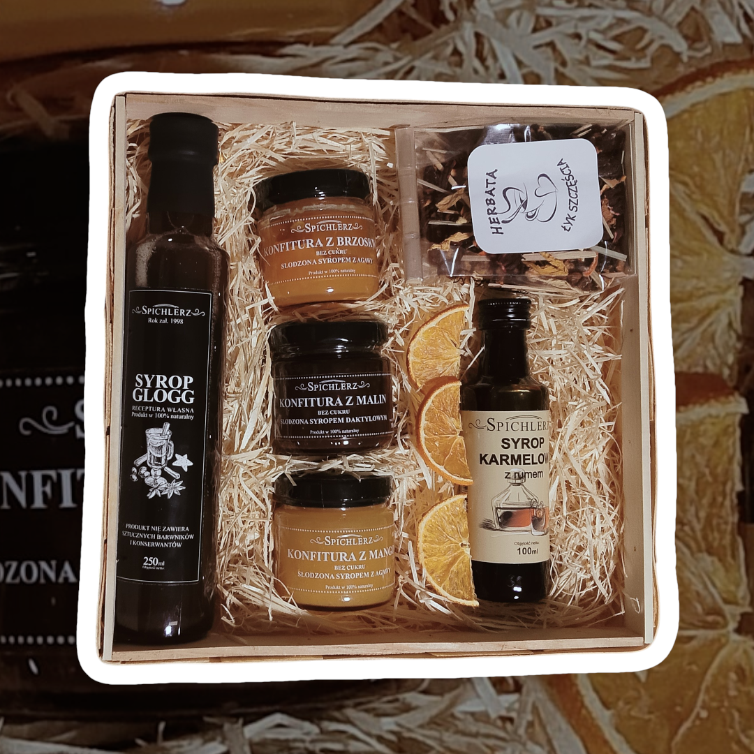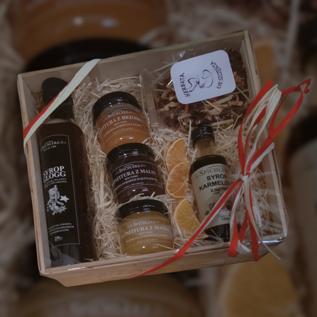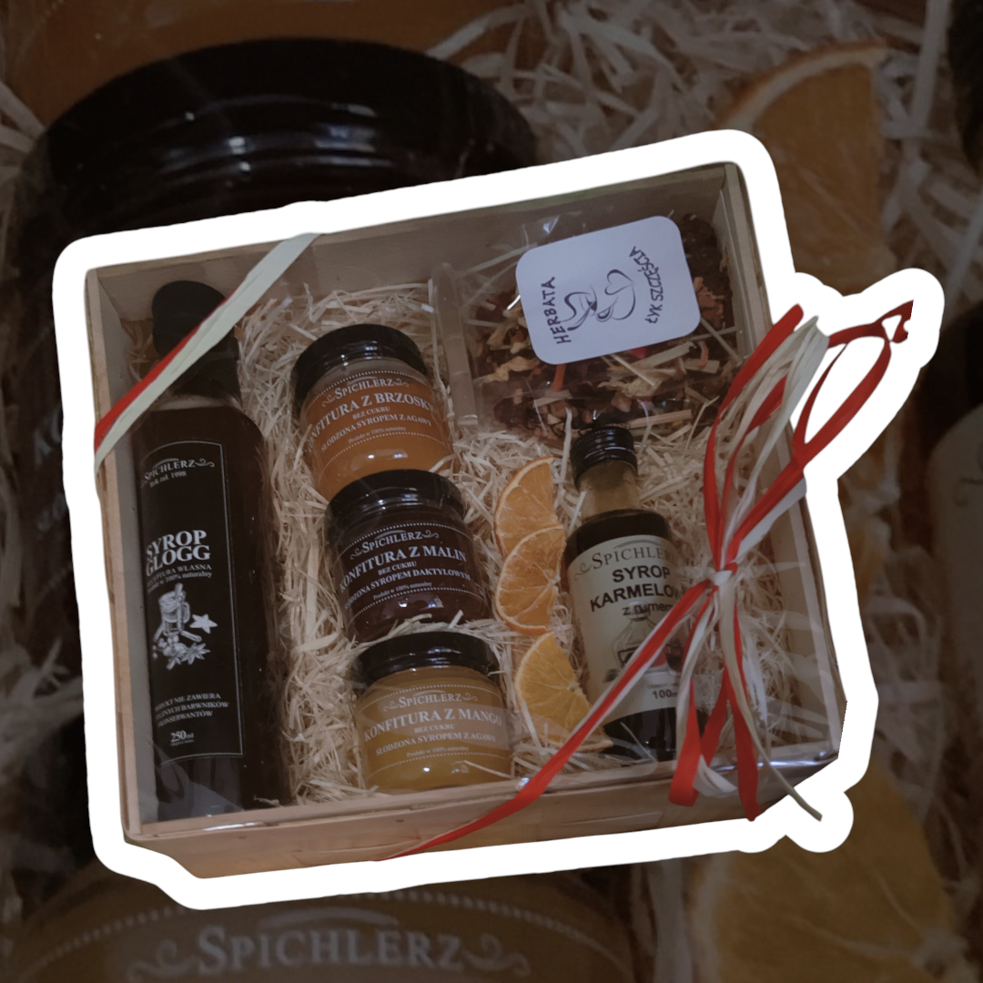 Zestaw prezentowy z dedykacją personalizowany prezent box syropy konfitury herbata upominek